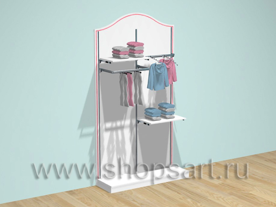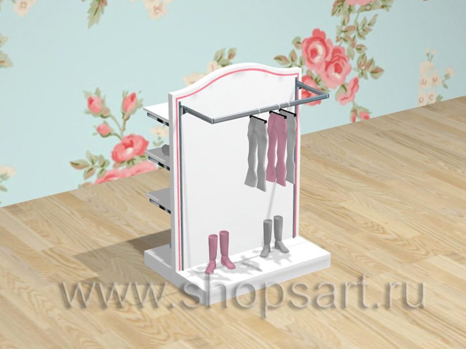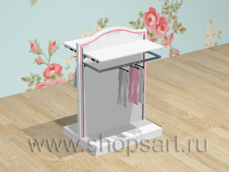 04 CП. Стеллаж для детской одежды с подиумом и двойной навеской.