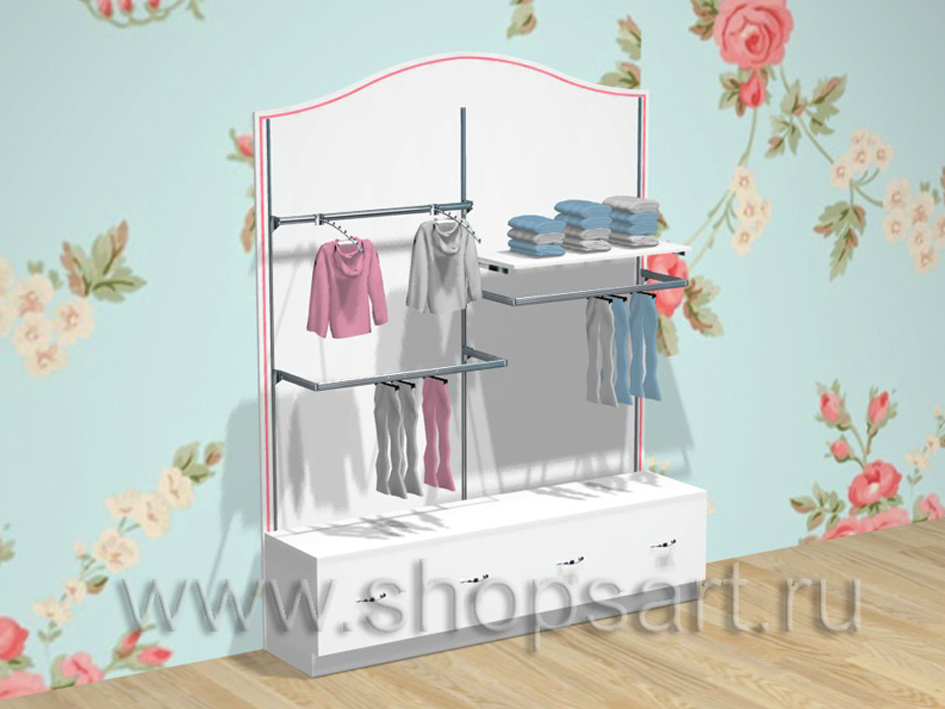 01 CП. Стеллаж для детской одежды с подиумом и навеской.