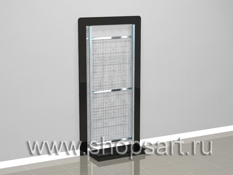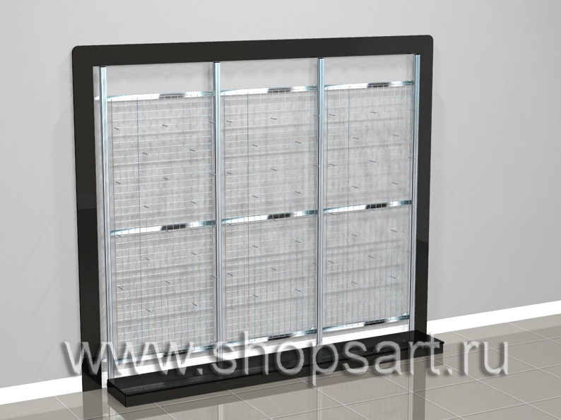 011 Стеллаж с сетчатой задней стенкой для навески товара.