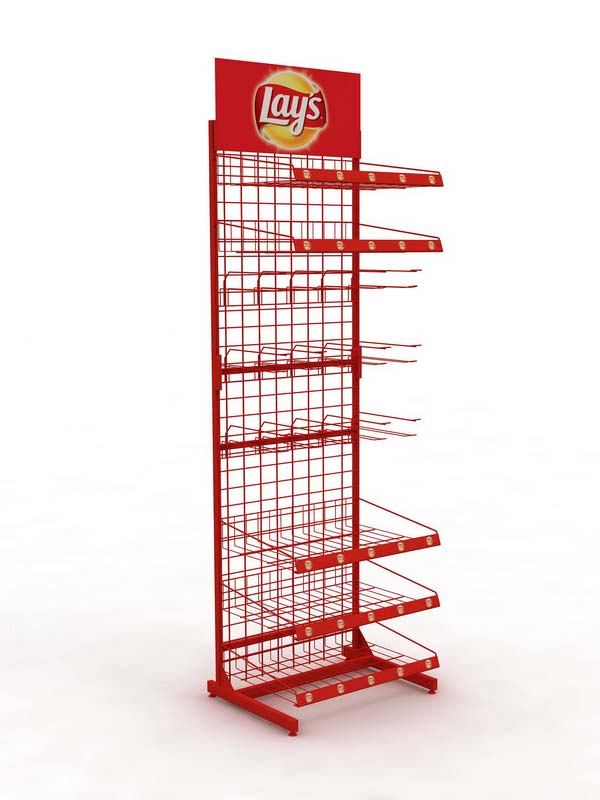 Торговая сетчатая стойка служит для демонстрации и продажи чипсов Lay’s, которые производятся компанией Frito-Lay, принадлежащей PepsiCo Inc. с 1970 года. Фирменная стойка высотой 90 см. состоит из основания и вертикально расположенной трубы, на которую монтируется четырехсторонняя корзина. В верхней части навешиваются крючки со всех сторон стойки. Логотип продукции наносится на двухстороннюю площадку.