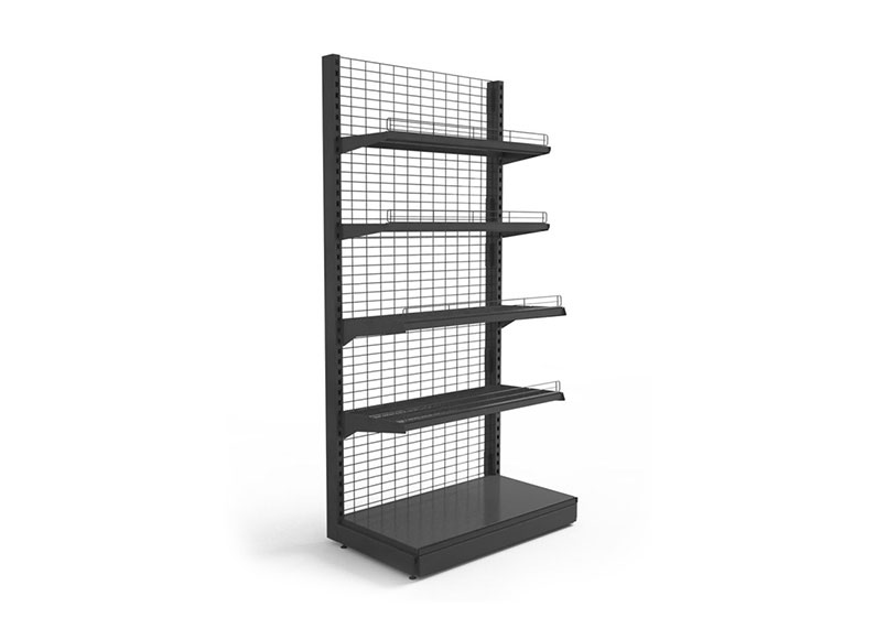 Стеллажи с сетчатыми задними стенками – классические стеллажи для выкладки продукции в магазине (чаще всего обуви). Используется в большинстве магазинов для демонстрации товара благодаря своей практичности и удобству использования. Чаще всего, данное торговое оборудование, различается по высоте самого стеллажа, а ширина и высота полок регулируется самостоятельно. Прозрачная задняя стенка способствует зрительному расширению пространства и отлично подходит для небольших островных магазинов, кроме того, грамотно подобранное расстояние в сетке визуально облегчает конструкцию.