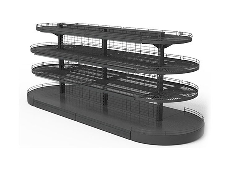 Овальный, сетчатый торговый остров удобен в эксплуатации, обеспечивает комфортный доступ к товару покупателям. Полки комплектуются проволочными ограничителями. Конструктив, размеры, цвет окраски могут быть изготовлены любые, согласно плану и дизайну Вашего магазина.