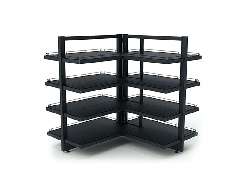 Внешняя торговая стойка имеет полукруглую конструкцию, используется для формирования угла торговых рядов из подобных изделий. Оптимальная прочность конструкции напольной торговой стойки делает её самым практичным решением для магазинов самообслуживания с большой проходимостью. Полки комплектуются проволочными ограничителями. По желанию заказчика торговая стойка для магазина окрашивается в любой цвет согласно палитре цветов RAL.