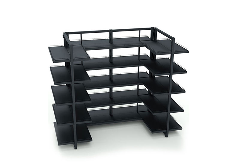 Торговый остров повышенной вместимости имеет П-образную конструкцию, состоит из четырех секций с пятью полками в каждой, удобен в эксплуатации. Остров укомплектован полками с ограничителями и ценникодержателями. Прочная и надежная конструкция торгового острова имеет длительный срок службы. Цвет окраски острова и конструктив может быть любым.
