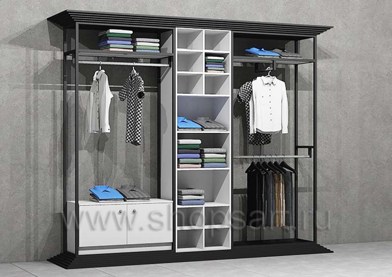 07 ЛК. Стеллаж ЛОФТ для магазина мужской одежды.