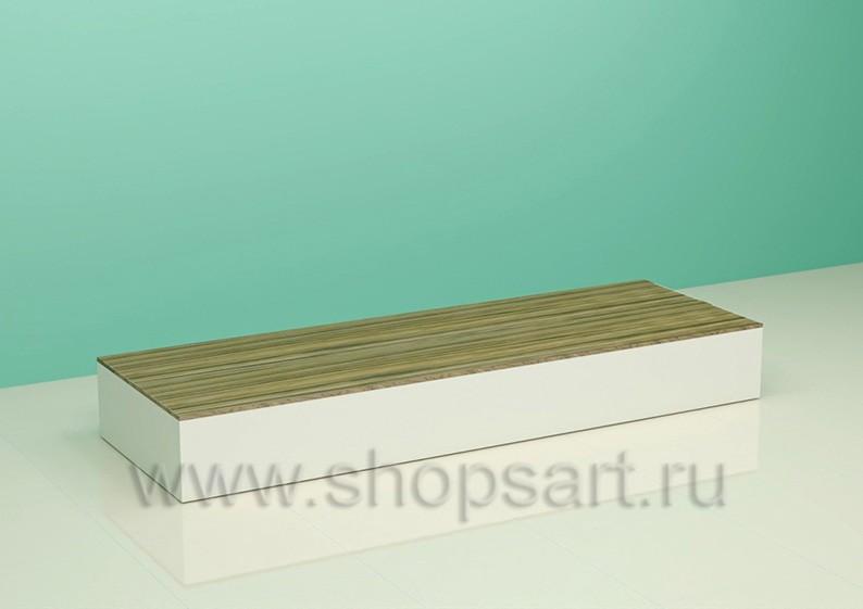 Подиум демонстрационный выполнен из белого, матового ЛДСП 16 мм, верхняя часть подиума изготовлена из высокоглянцевого МДФ, цвет «под дерево». Демонстрационный подиум под манекены предназначен для оформления островных конструкций в торговом зале или витрины магазина. Подиум может быть выполнен в любом другом цвете ЛДСП и МДФ.