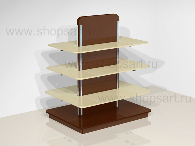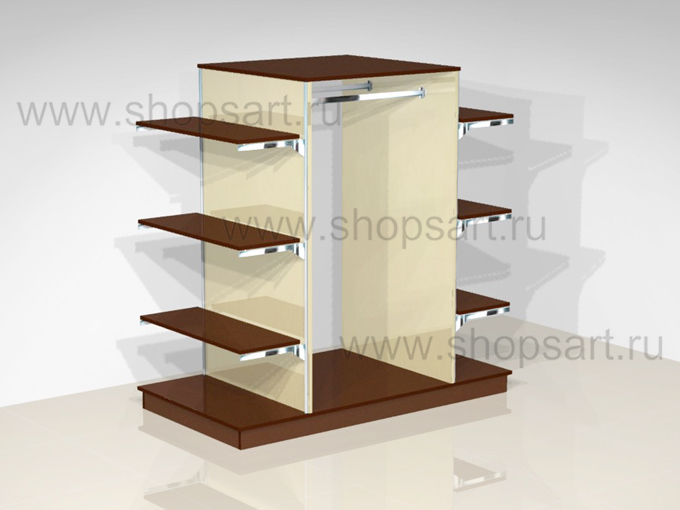 Стойка островная используется для выкладки и демонстрации обуви, одежды, аксессуаров. Стойка производится из высокоглянцевого МДФ или ЛДСП, перфорированных стоек, металлической хромированной трубы d25 мм., стекла 8мм. Стойка с двухсторонней выкладкой используется для выкладки обуви и навески одежды, удобна для просмотра товара. Островная стойка для обуви устанавливается в центре зала.Подробнее