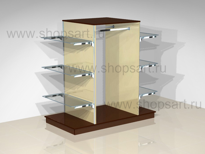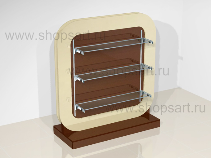 Стойка производится из высокоглянцевого МДФ или ЛДСП, стекла 8мм. Стойка с круговой выкладкой используется для выкладки обуви, одежды и аксессуаров, удобна для просмотра товара. Островная стойка для обуви устанавливается в центре зала. Стойка привлекает внимание покупателей своим оригинальным дизайном к себе, и выложенному товару, а значит способствует росту продаж.Подробнее