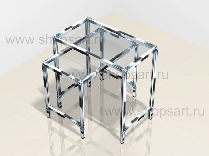 Столики используются для выкладки обуви, одежды и аксессуаров, удобны для демонстрации высокой обуви, новых коллекций. Благодаря оригинальному дизайну, гармонично сочетающему хромированный металл и стекло, столики привлекают внимание покупателей. Островная конструкция удобна для выкладки и просмотра товара. Столики используются для выкладки товара в центре зала и оформления витрин.Подробнее
