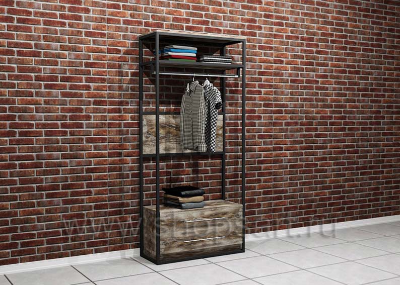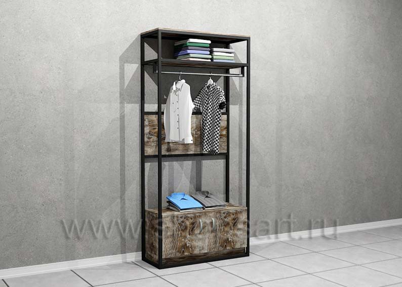 08 ЛОФТ. Блок пристенных стеллажей для одежды.