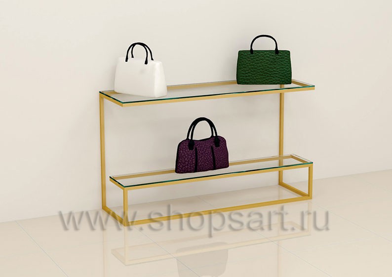 10 ТИФ. Стол для сумок, в магазин, со стеклянными полками.
