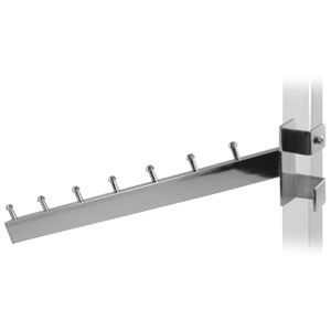 Модульная система Vertical – универсальное торговое оборудование со стильным дизайном – продолжает традиции популярной серии Neo-fix. Новинка, как и Neo-fix, состоит из перфорированных стоек, которые крепятся к стене или панели из ДСП, и различных навесных элементов. Кронштейны Vertical снабжены блокировочным винтом, неподвижно фиксирующим навесной элемент на стойке. Характерной чертой Vertical является широкая функциональность элементов серии, позволяющая разнообразно и выгодно оборудовать бутики и магазины одежды, обуви, парфюмерии и других товаров.