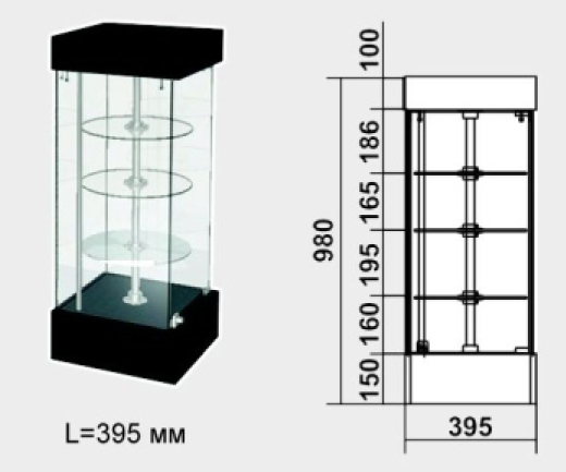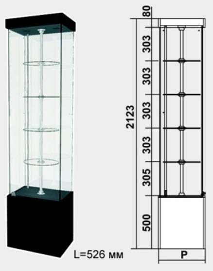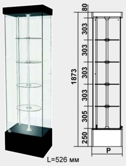 - В-005 Демонстрационная витрина с крутящимися полками. Возможная глубина: — 546мм