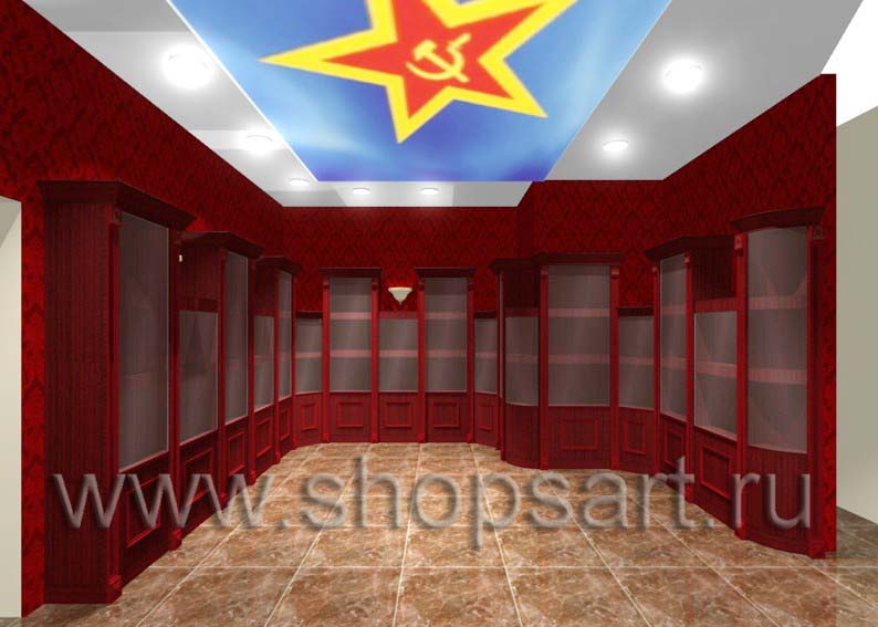 На этой странице Вы можете ознакомиться с 3D визуализацией дизайн-проекта ювелирного магазина «Октябрь», находящегося в городе Москве, Фрунзенская набережная. Разработала дизайн магазина и поставила торговую мебель компания «Искусство интерьеров». Интерьер магазина и дизайн торгового оборудования был создан по заказу владельцев из Китайской Народной Республики для продажи ювелирных изделий и часов Российского производства экскурсионным группам из Китая. Узнать больше о наших коллекциях мебели для ювелирных магазинов Вы можете на странице торгового оборудования для ювелирных магазинов.