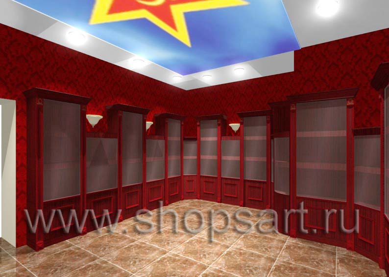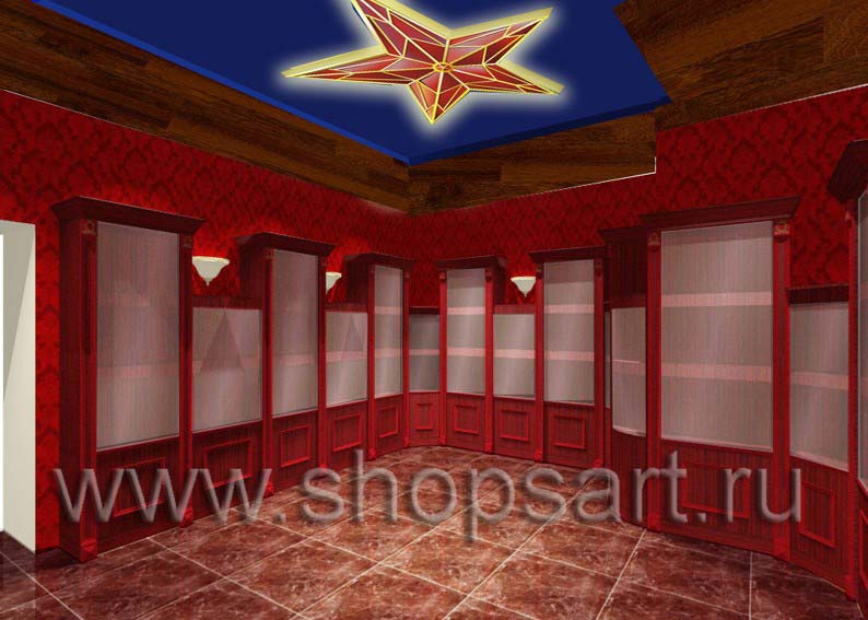 - 3D визуализация дизайн-проекта ювелирного магазина “Октябрь”, г. Москва, Фрунзенская набережная. Зал часов. Дизайн 13.