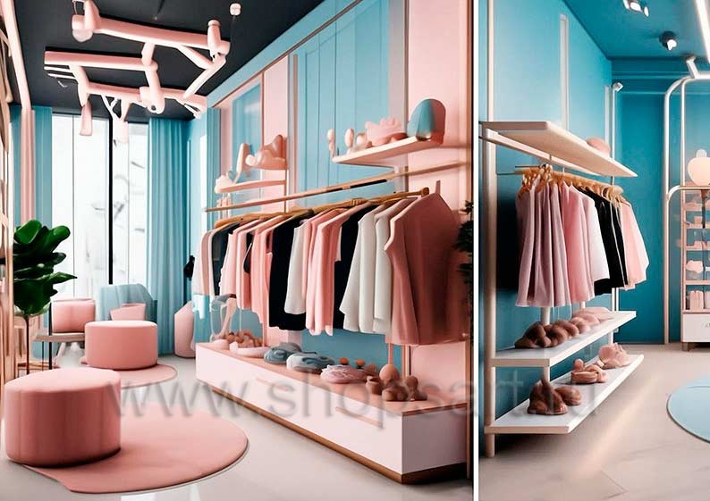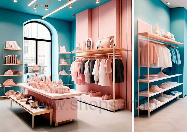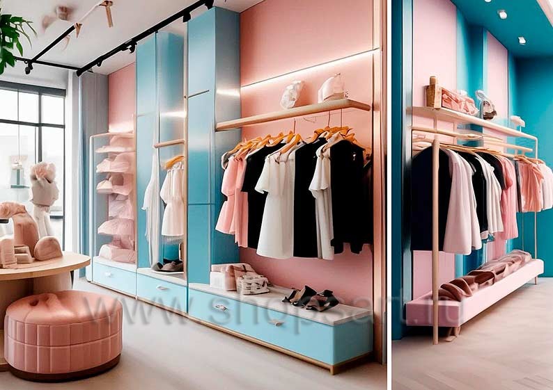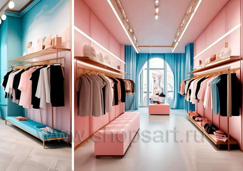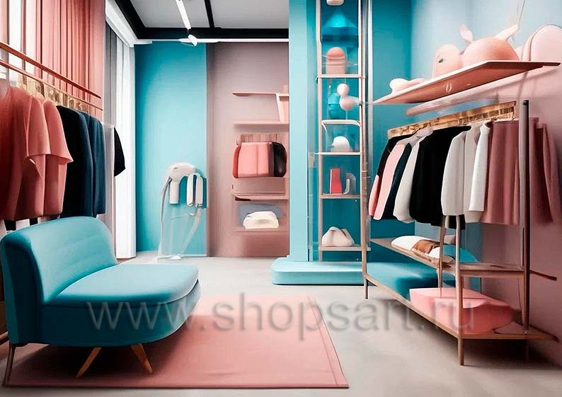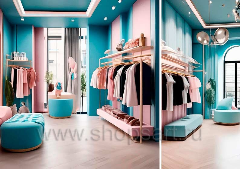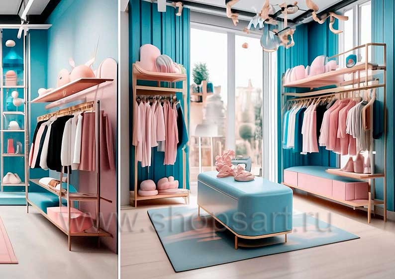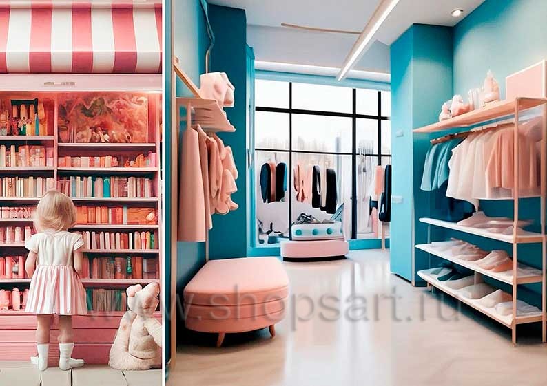 Компания ООО Искусство интерьеров изготавливает стильное торговое оснащение. Так, коллекцию «Розовая фантазия» удобно применять для презентации детских товаров. Серия состоит из функциональных конструкций, обеспечивающих грамотную выкладку ассортимента. Дизайн интерьера 2 детского магазина на основе торгового оборудования РОЗОВАЯ ФАНТАЗИЯ является примером продуманного использования пространства в коммерческом помещении. Практичная и стильная торговая мебель помогла выполнить эффектную демонстрацию товаров.