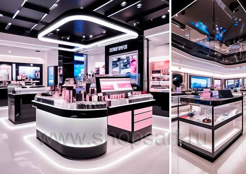 Торговое оборудование для магазинов косметики на основе коллекции ПУДРА