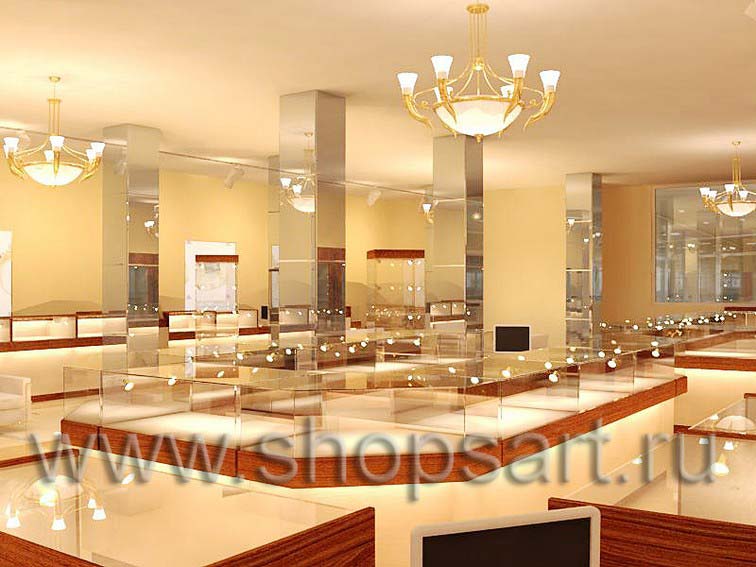 Дизайн проект ювелирного магазина на основе коллекции торгового оборудования КОФЕ С МОЛОКОМ