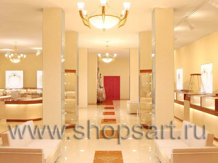 Дизайн проект ювелирного магазина “Золотая Лилия” г. Москва на основе коллекции торгового оборудования “КОФЕ С МОЛОКОМ”