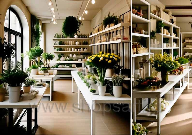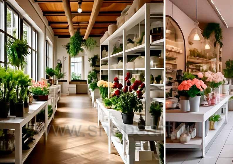 и др. Будет просто отлично, если дизайн магазина цветов включает в себя деревянные полы, окрашенные в светлый оттенок. Так интерьер получится более уютным и презентабельным.