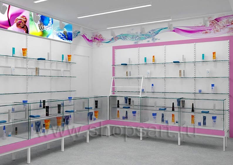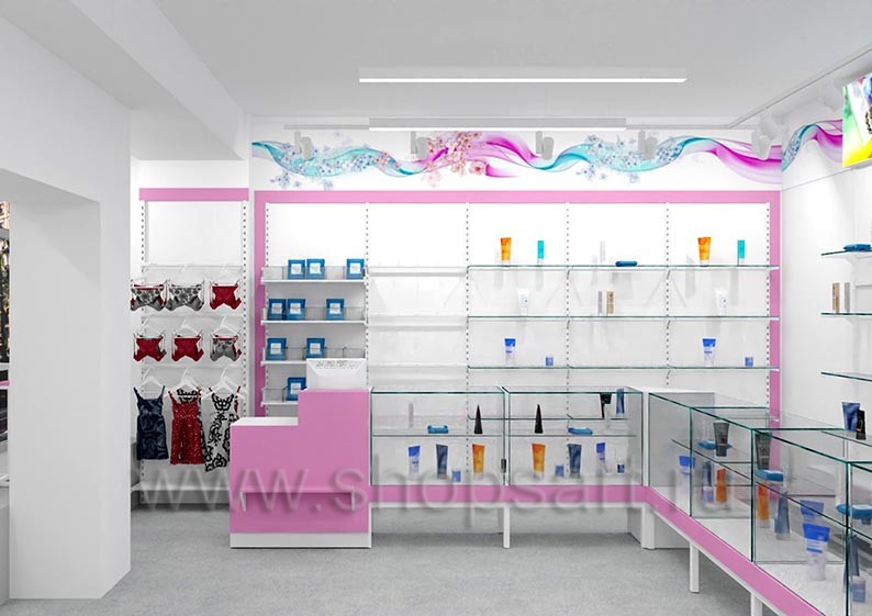 Торговое оборудование для магазинов косметики на основе коллекции РОЗОВАЯ ЛИНИЯ