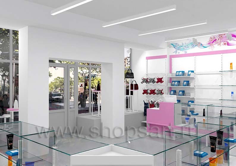 На этой странице Вы можете ознакомиться с дизайном интерьера и дизайном торговой мебели 3 магазина косметики на основе коллекции торговой мебели «РОЗОВАЯ ЛИНИЯ». Разработала дизайн магазина косметики и дизайн торгового оборудования компания ООО «Искусство интерьеров». Узнать больше о наших коллекциях торговой мебели для косметики Вы можете на странице оборудование для косметики.