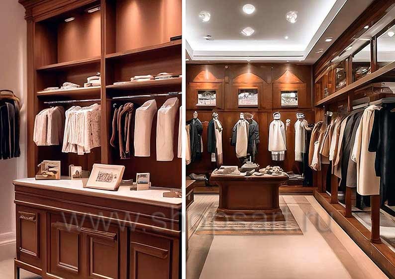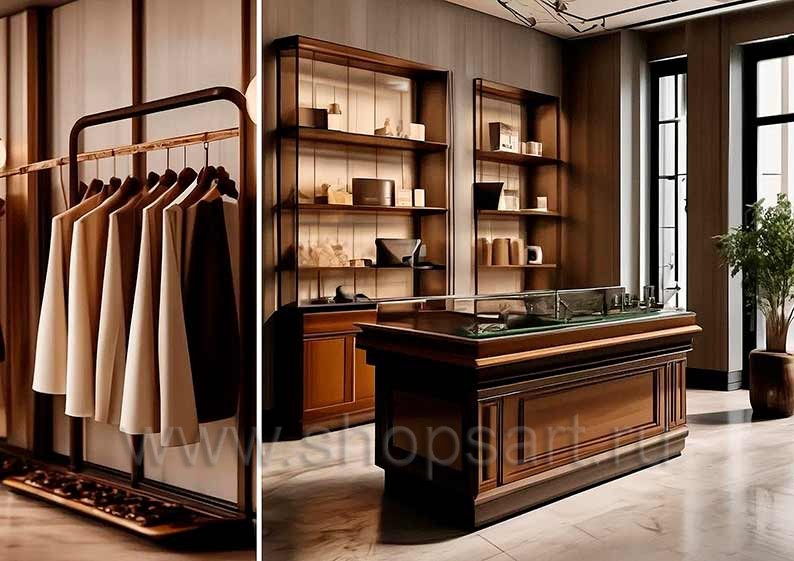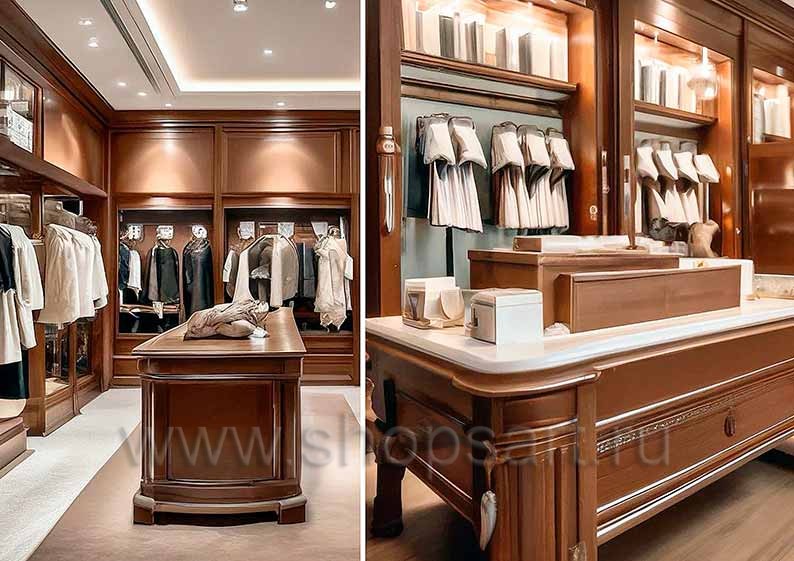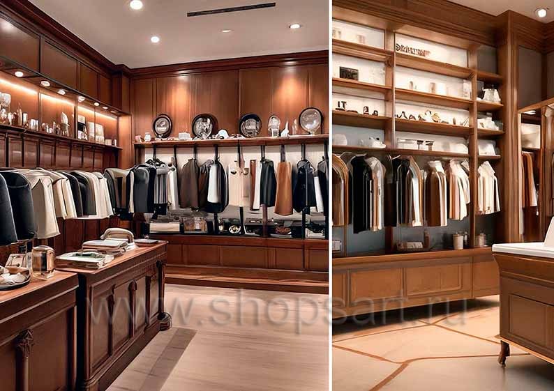 Торговая мебель для магазинов мужской одежды коллекции МУЖСКОЙ СТИЛЬ