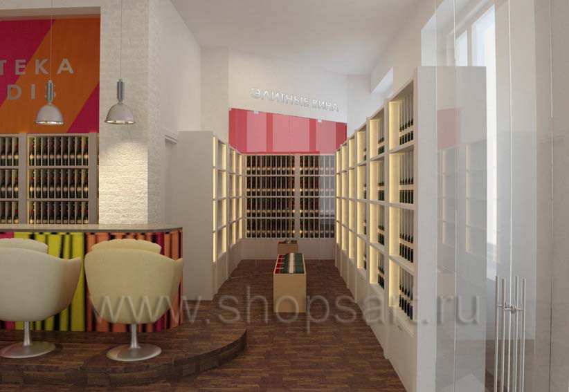 На этой странице Вы можете ознакомиться с дизайном интерьера бара для винотеки. Разработала дизайн помещения и дизайн мебели компания «Искусство интерьеров». Узнать больше о наших коллекциях мебели для магазинов Вы можете на странице торгового оборудования для магазинов.