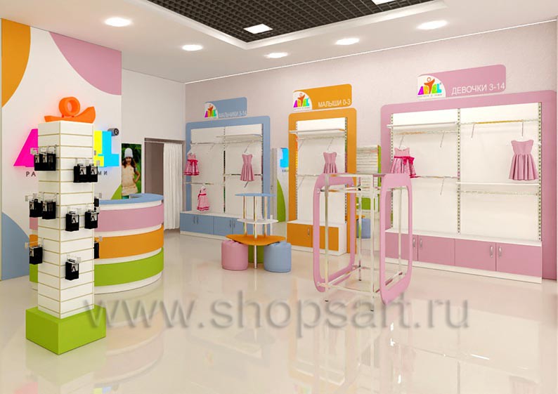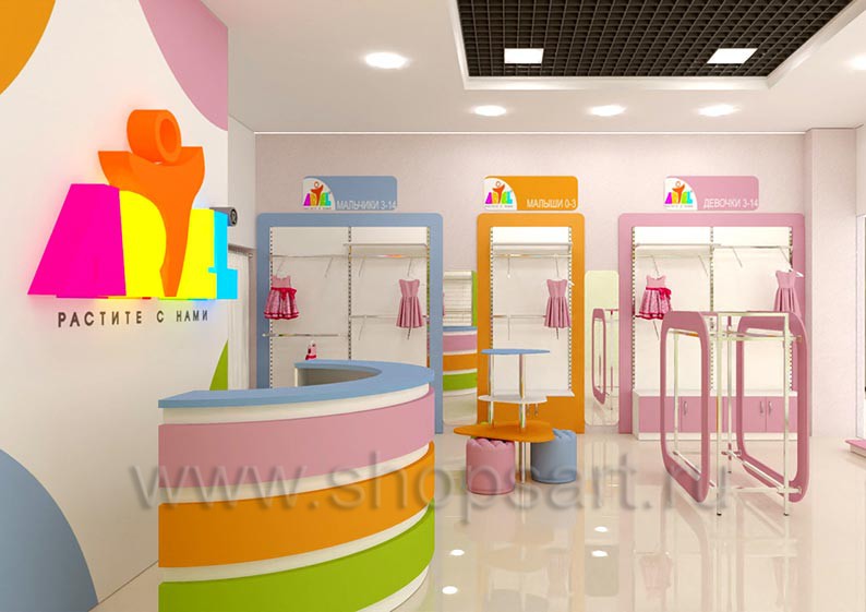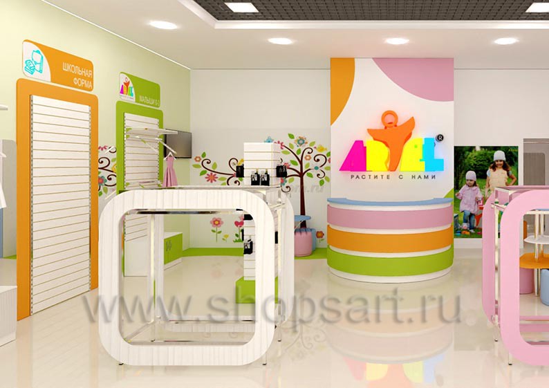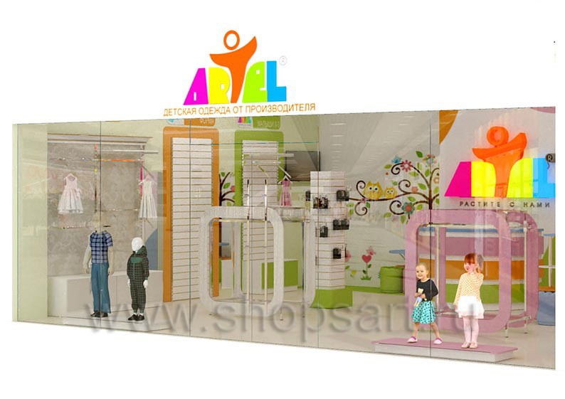 Дизайн-проект детского магазина одежды «ARTEL», г. Нижний Новгород, на основе коллекции торгового оборудования «АКВАРЕЛИ»