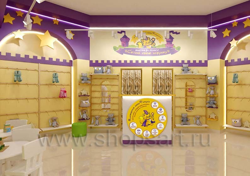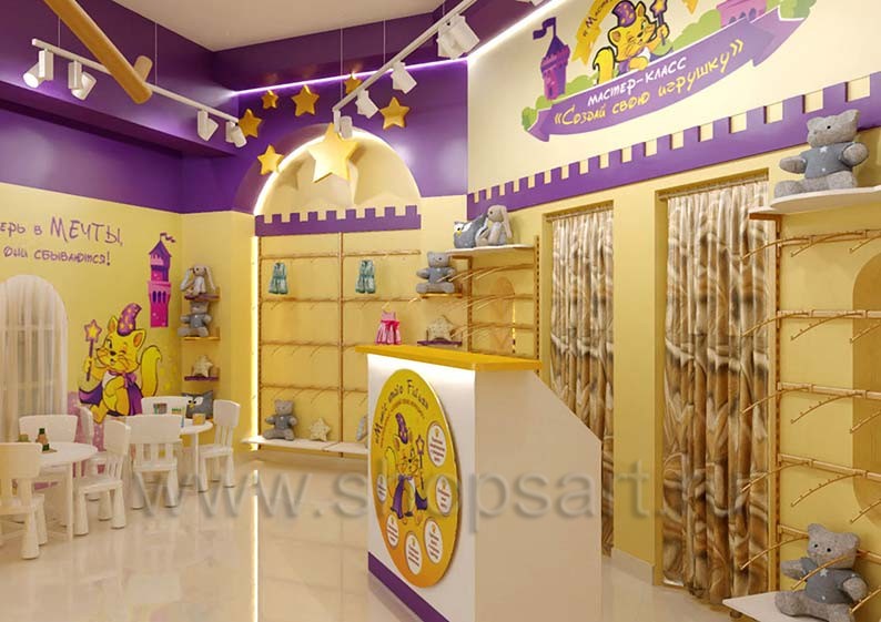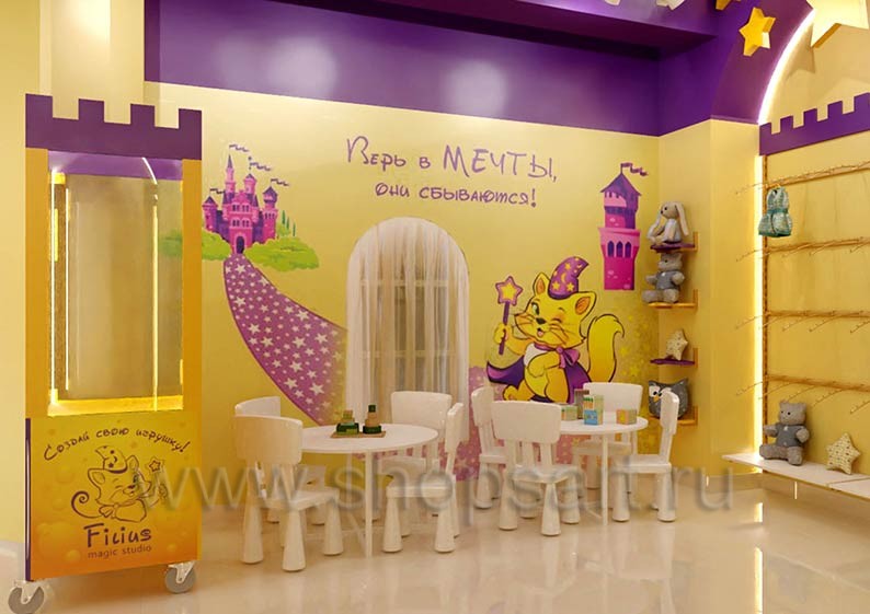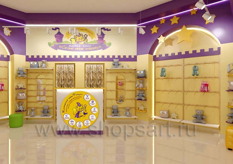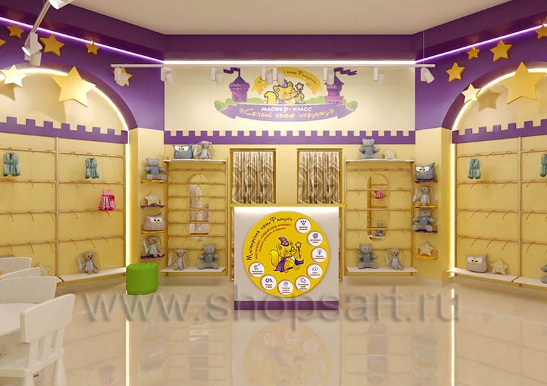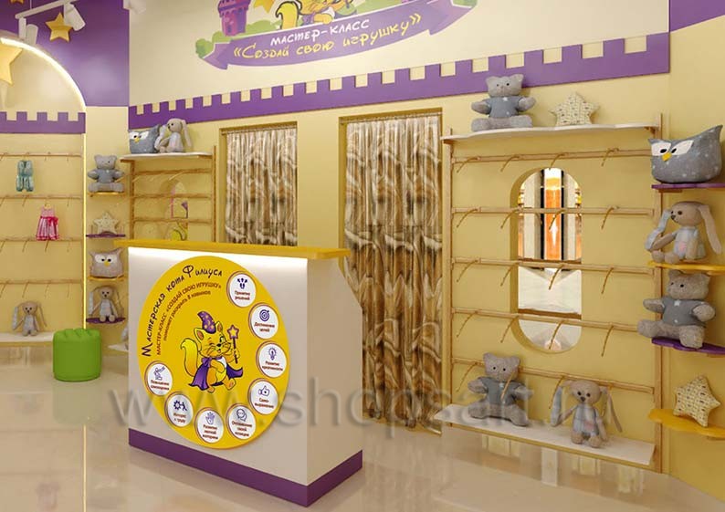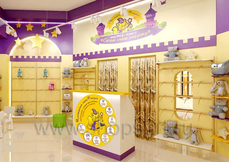 На этой странице Вы можете ознакомиться с дизайном интерьера для сетевого детского магазина игрушек: Мастерская мягких игрушек кота Филиуса «Magik Studio Filius», находящегося в ТРК “Гранд Каньон” Дивный город, 3 этаж, город Санкт-Петербург, проспект Энгельса, дом 154, на основе коллекции торгового оборудования «МАМИН ДОМ». Разработала дизайн магазина и дизайн торгового оборудования компания «Искусство интерьеров». Узнать больше о наших коллекциях оборудования для детских магазинов Вы можете на странице мебели для магазинов детских товаров.