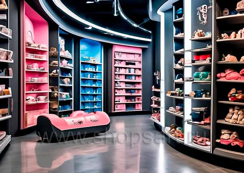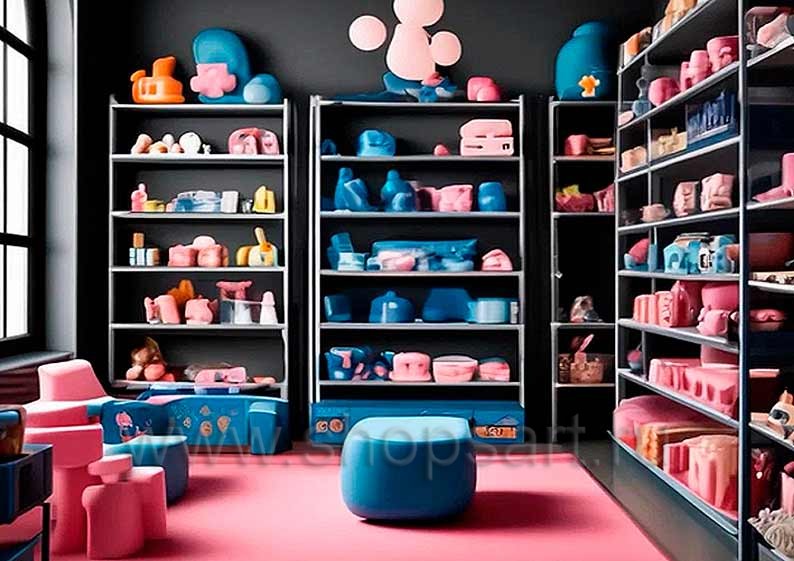 Поскольку для размещения разного рода игрушек (кукол, машинок, плюшевых зверей и т.д.) используются стеллажи и другие торговые конструкции, то уместно сделать упор на дизайне данного оснащения. Мебель для магазина, главными покупателями которого являются дети, должна быть привлекательной именно в восприятии этих юных созданий. Малышам понравится торговое оборудование в виде домиков, пирамидок или машинок. Они будут в восторге от ярких разноцветных торговых стеллажей с подсветкой.