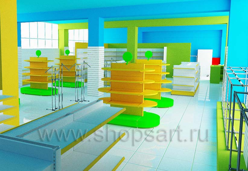 На этой странице Вы можете ознакомиться с дизайном интерьера детского магазина, на основе коллекции торгового оборудования «ЦВЕТНЫЕ МЕТАЛЛИЧЕСКИЕ СТЕЛЛАЖИ». Разработала дизайн магазина и дизайн торговой мебели компания «Искусство интерьеров». Узнать больше о наших разработках в области дизайна детских магазинов Вы можете на странице дизайна интерьеров детских магазинов.