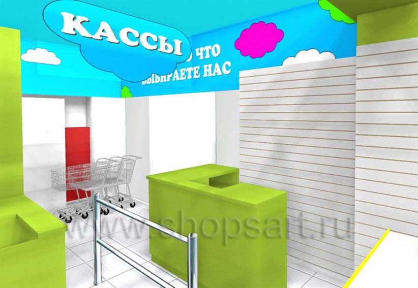 Неважно, какой вид детских товаров представлен в вашем магазине. В любом случае необходимо приложить усилия для того, чтобы атмосфера в торговом зале была уютной и праздничной. Никакой унылости. Строгий стиль здесь также не уместен. Можно сказать, что дизайн магазина детских товаров имеет свои преимущества в процессе его разработки. Один из таких плюсов – возможность дать широкий простор фантазии и творческим порывам. Однако делать это следует умеючи, на профессиональном уровне. Именно поэтому дизайн интерьера магазина лучше доверить специалистам компании ООО «Искусство интерьеров». У нас не только производится торговое оборудование на заказ. Здесь работают опытные специалисты, которые готовы разработать оригинальный и функциональный дизайн интерьера для детских магазинов. Их навыки, знания и профессионализм позволят реализовать интересные и смелые идеи в оформлении коммерческого помещения. Фото открытых детских магазинов, дизайн которых выполнялся специалистами нашей компании, являются наглядным доказательством их профессионализма.