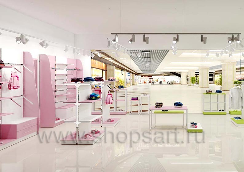 Фотографии торгового оборудования в открытых детских магазинах на основе коллекции РОЗОВАЯ ФАНТАЗИЯ