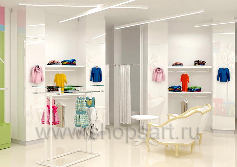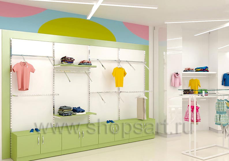 Дизайн-проект детского магазина одежды «ARTEL», г. Нижний Новгород, на основе коллекции торгового оборудования «АКВАРЕЛИ»