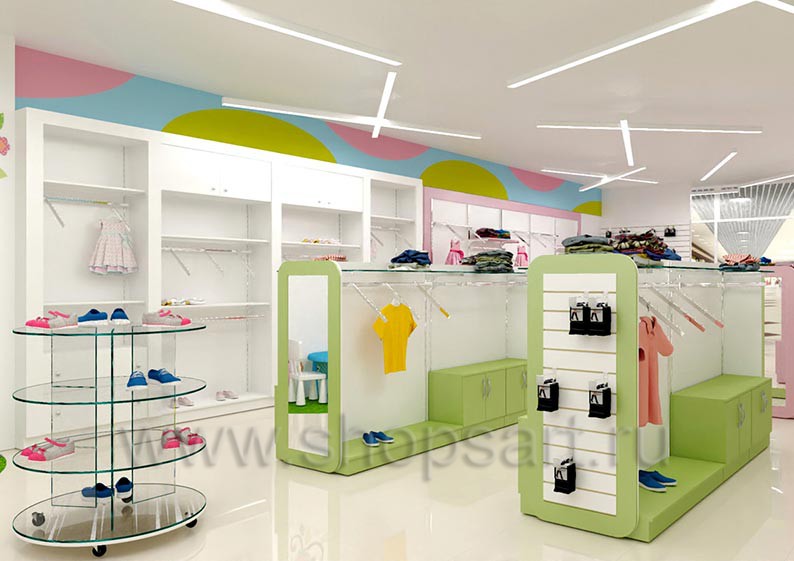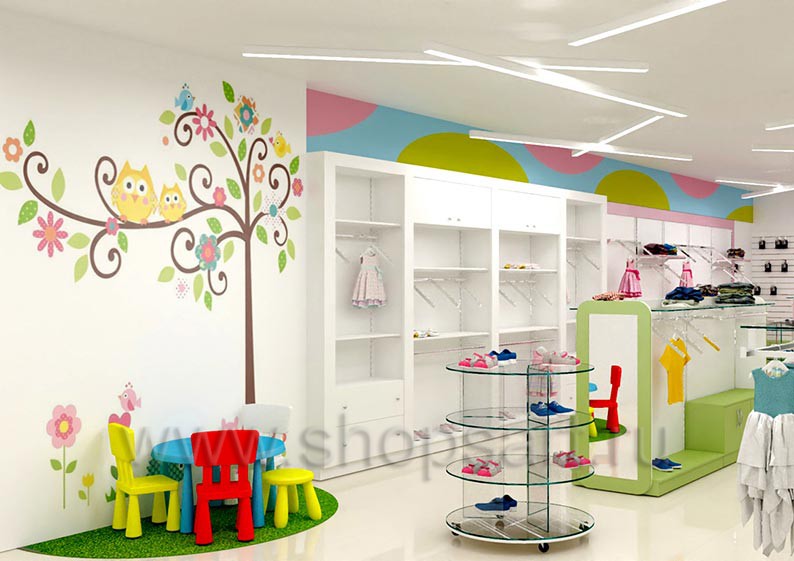 - Эстетику и удобство. Даже маленькие дети прекрасно чувствуют разницу между продуманным и безвкусно обставленным интерьером. Вообще, в любом ребенке заложено чувство прекрасного. Поэтому торговая мебель и декор в детском магазине должны непременно понравиться им.