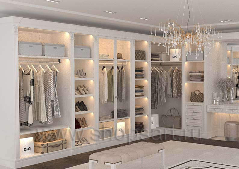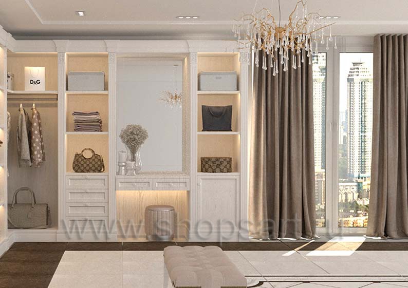 На этой странице Вы можете ознакомиться с дизайном интерьера гардеробных 1 и мебелью для гардеробных комнат на основе коллекции мебели “КЛАССИЧЕСКИЙ СТИЛЬ“. Разработала дизайн гардеробной и дизайн мебели для гардеробной компания «Искусство интерьеров». Разработаем для Вас интерьер гардеробной, шкафы для одежды, шкафы для обуви, комоды для белья и другое оборудование для гардеробных.