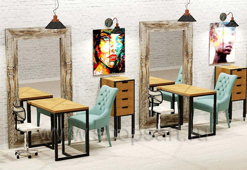 13 ЛОФТ салон. Комплект мебели для салона красоты с гримерным зеркалом.