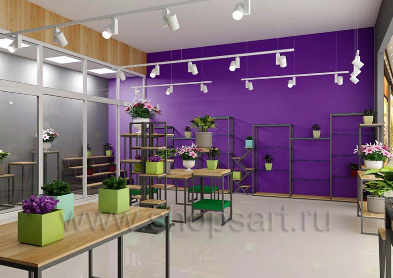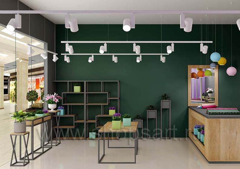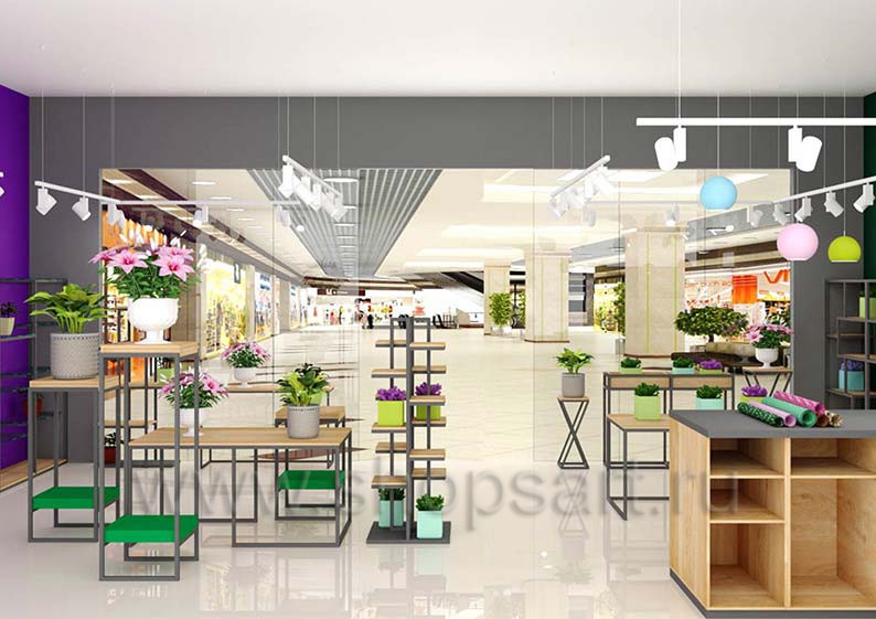 На этой странице Вы можете ознакомиться с дизайном интерьера и дизайном торговой мебели магазина цветов на основе коллекции торговой мебели «БУКЕТ». Разработала дизайн магазина цветов и торговой мебели компания «Искусство интерьеров».
