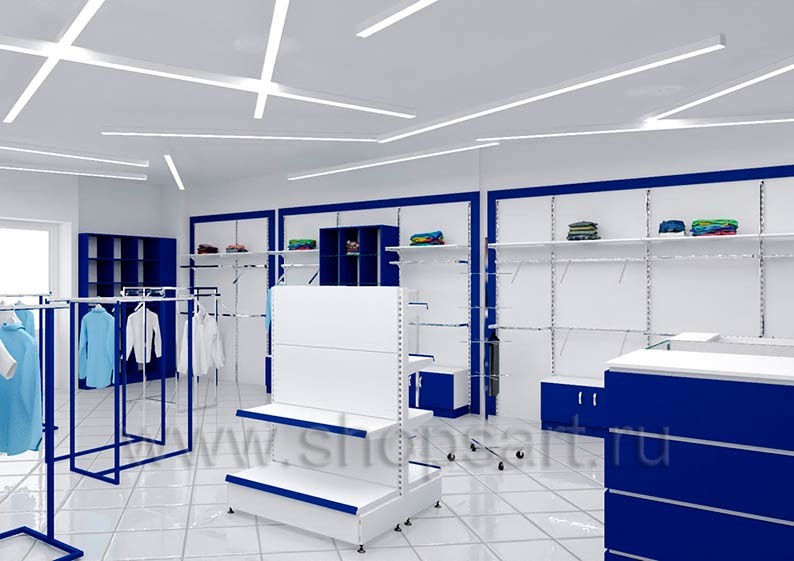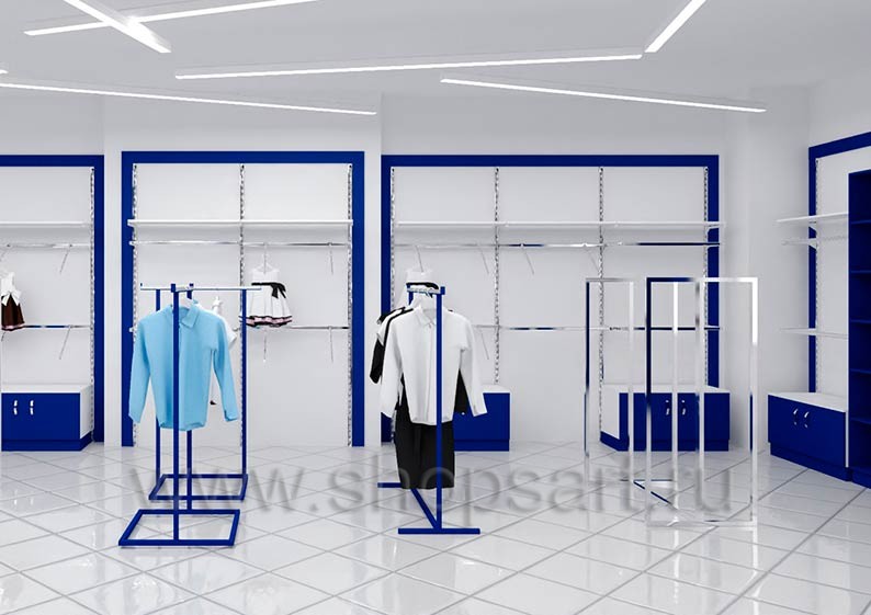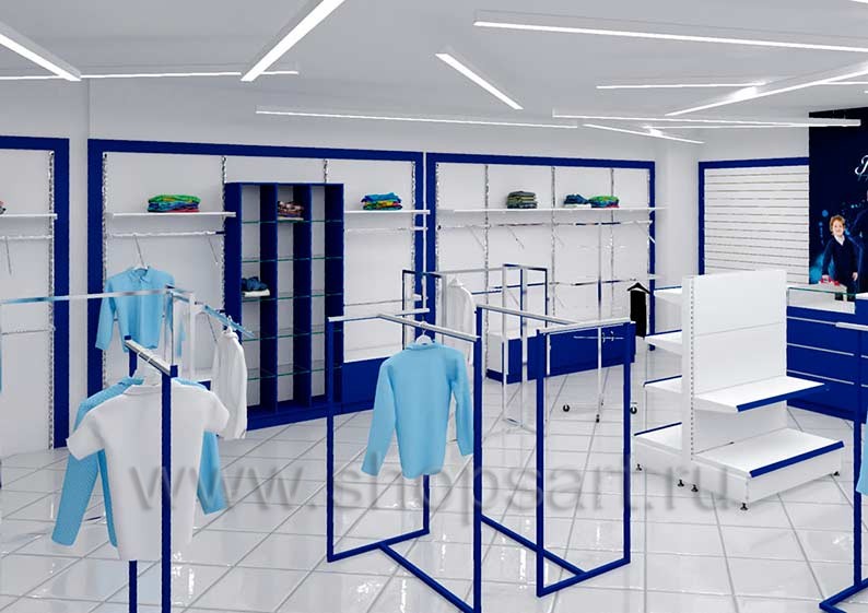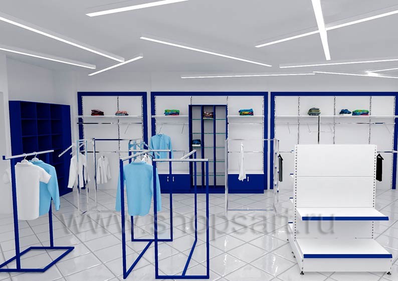 Торговое оборудование для магазинов одежды на основе коллекции ГОЛУБАЯ ЛАГУНА