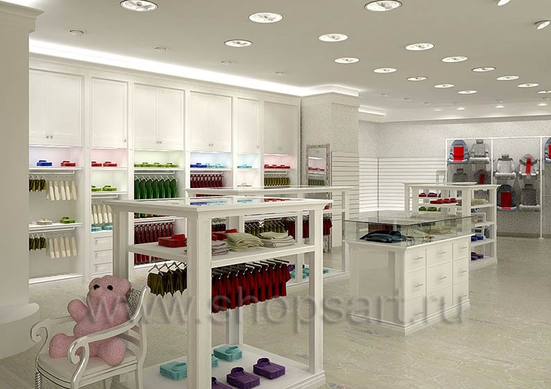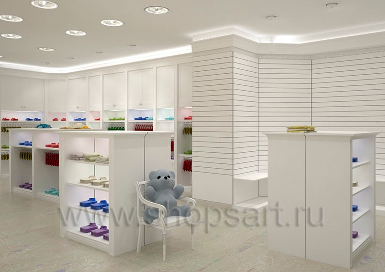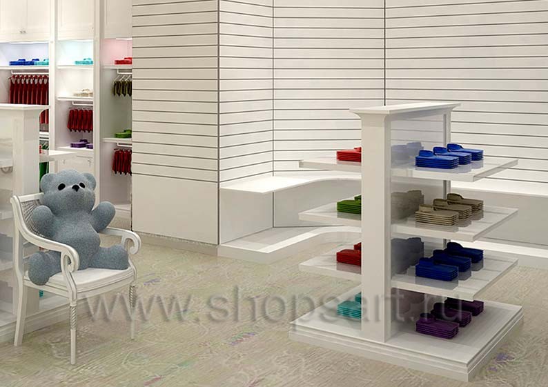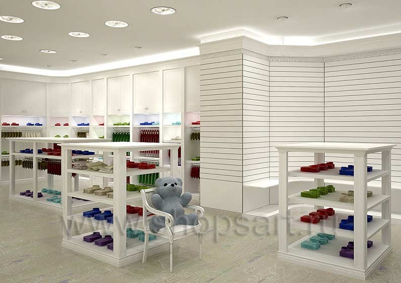 Торговая мебель для магазинов детской одежды коллекции БЕЛАЯ КЛАССИКА