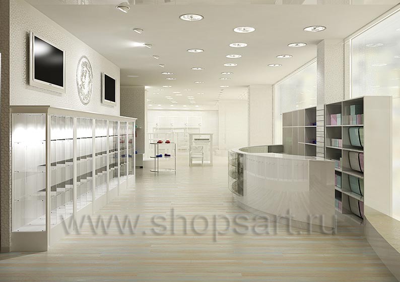 Окрашенный МДФ, высокоглянцевый МДФ, ЛДСП, отделка торговой мебели массивом дерева, стекло 8мм.