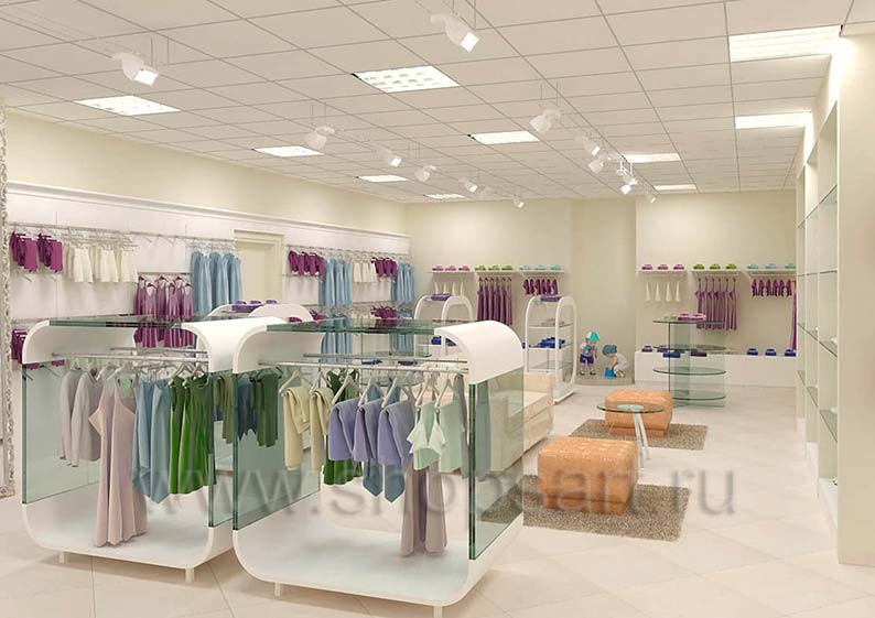 Прежде всего следует обозначить концепцию, которой нужно придерживаться при выборе тех или иных элементов интерьера. В каком бы стиле не был оформлен торговый зал, в конечном итоге в нем должна царить атмосфера детства. Это значит, что маленьким покупателям в магазине должно быть интересно, весело и беззаботно. Только в этом случае они не захотят его быстро покинуть, а позволят родителям спокойно выбрать нужные товары. Таким образом, привлекательный дизайн магазина одежды помогает развивать бизнес.
