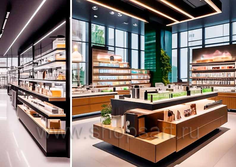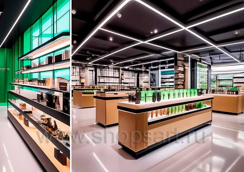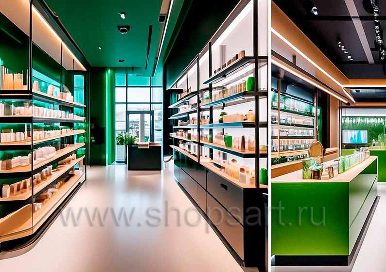 Торговая мебель в дизайне магазина косметики