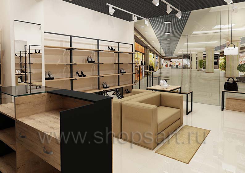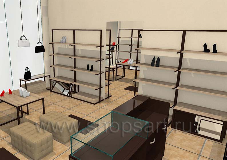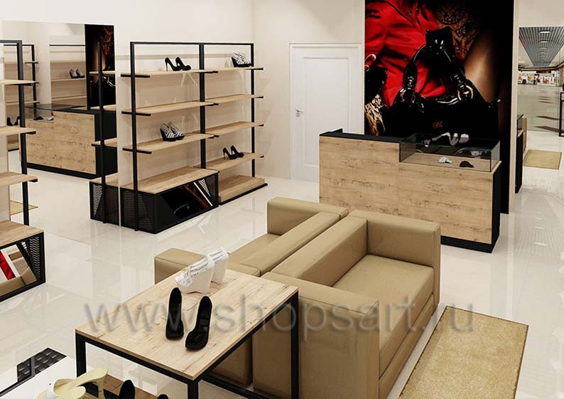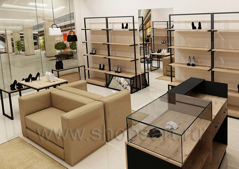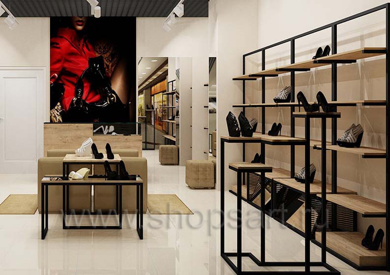 Дизайн проект магазина обуви на основе коллекции торгового оборудования СТИЛЬ ЛОФТ