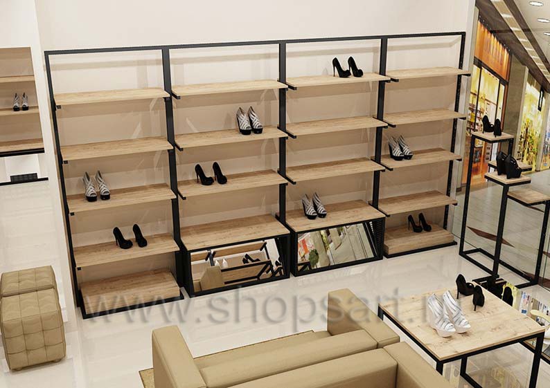 Торговая мебель для магазинов обуви коллекции Стиль Лофт