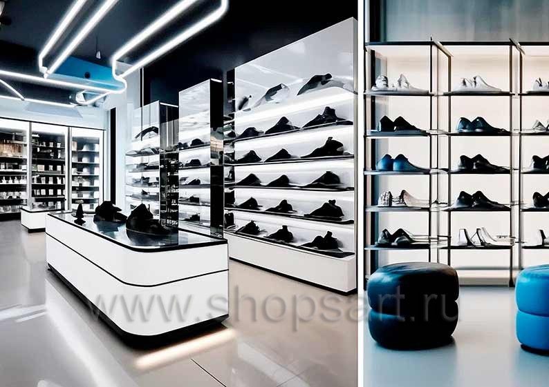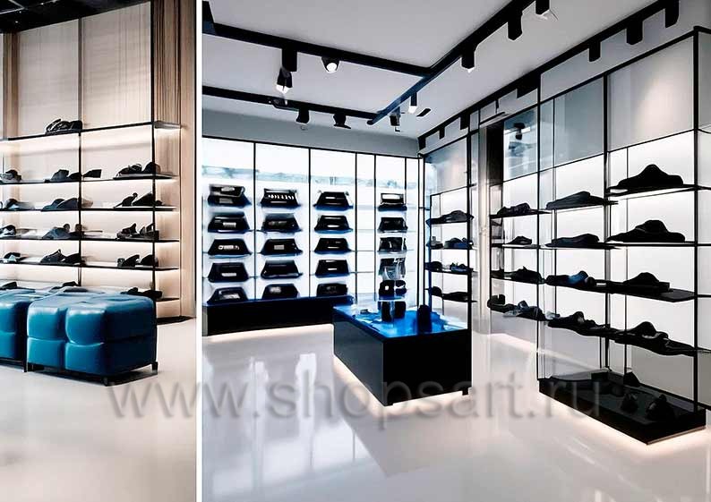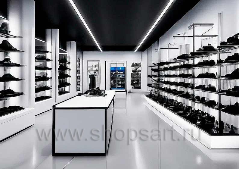 Дизайн проект магазина обуви на основе коллекции торгового оборудования СТИЛЬ ЛОФТ
