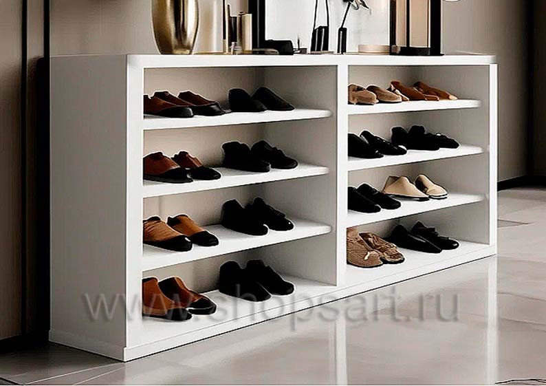 Удачным решением может стать изготовление по индивидуальным размерам стеллажей с закрытыми нишами для хранения коробок и товарных запасов. Включив в интерьер магазина обуви такое оснащение, у вас получится не только рационально использовать территорию торгового зала, но и обеспечить порядок в заведении.