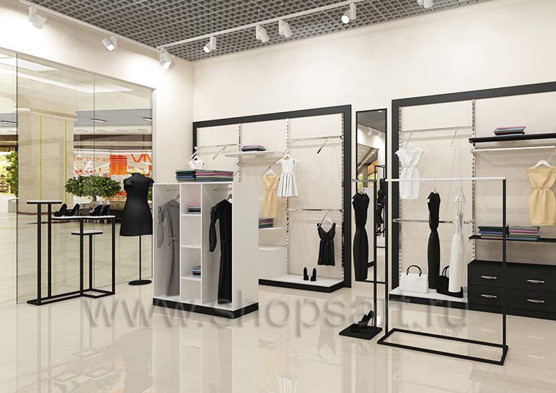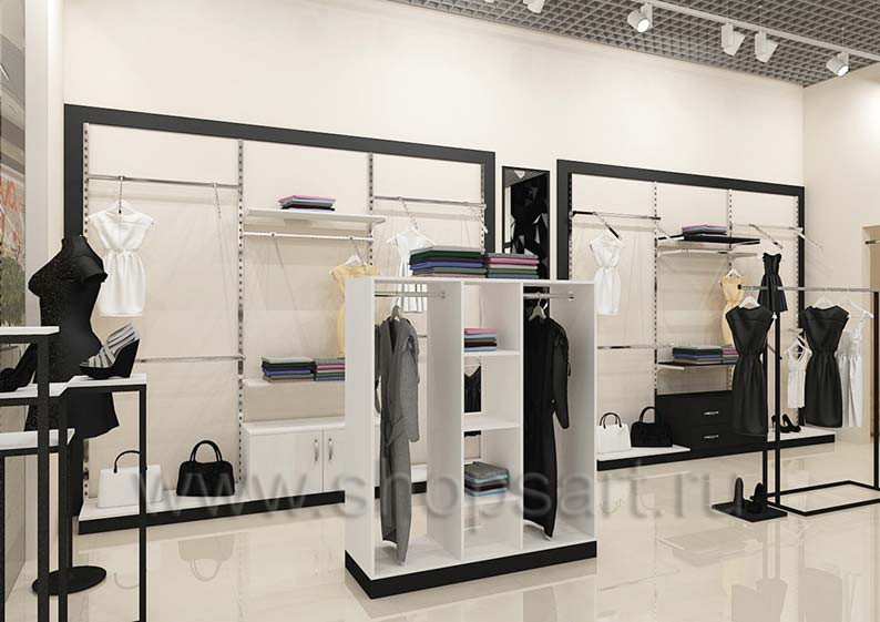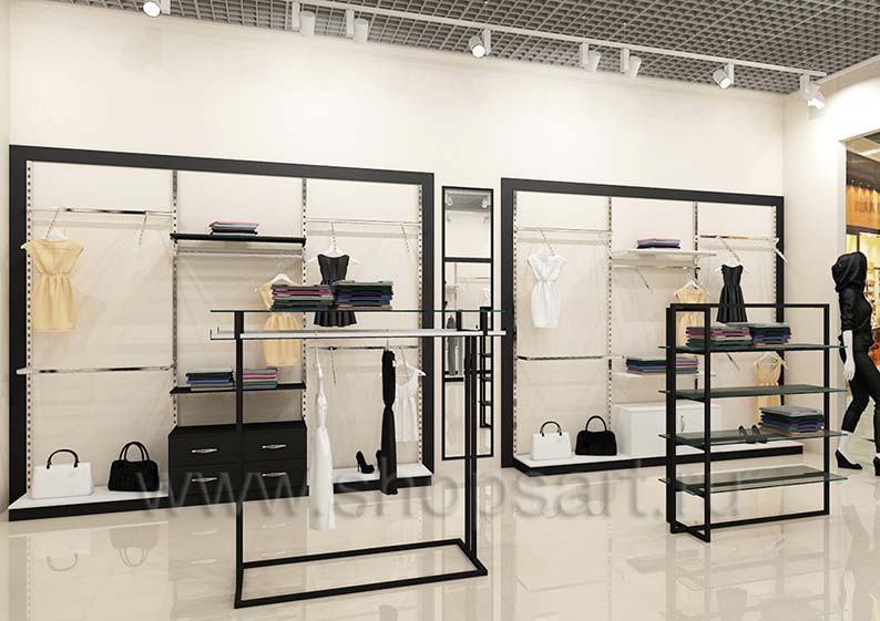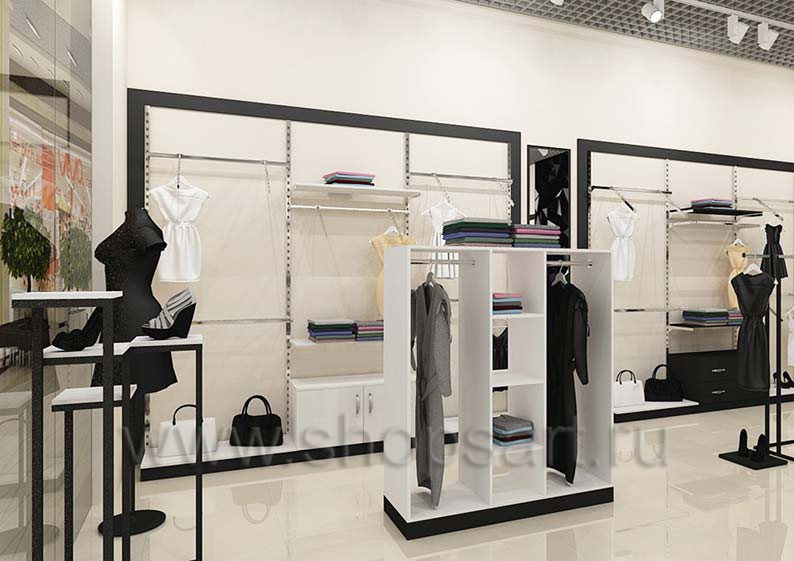 Торговое оборудование для магазинов одежды на основе коллекции ЧЕРНО БЕЛАЯ КЛАССИКА