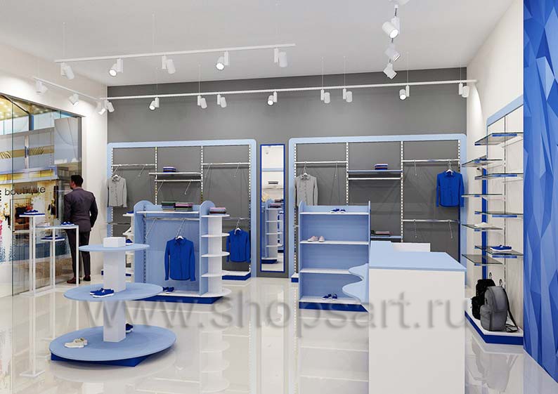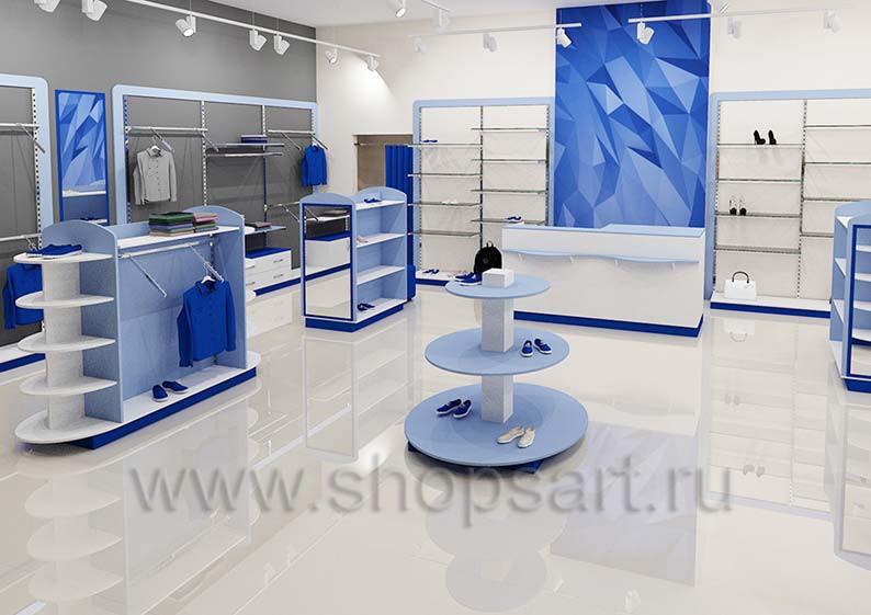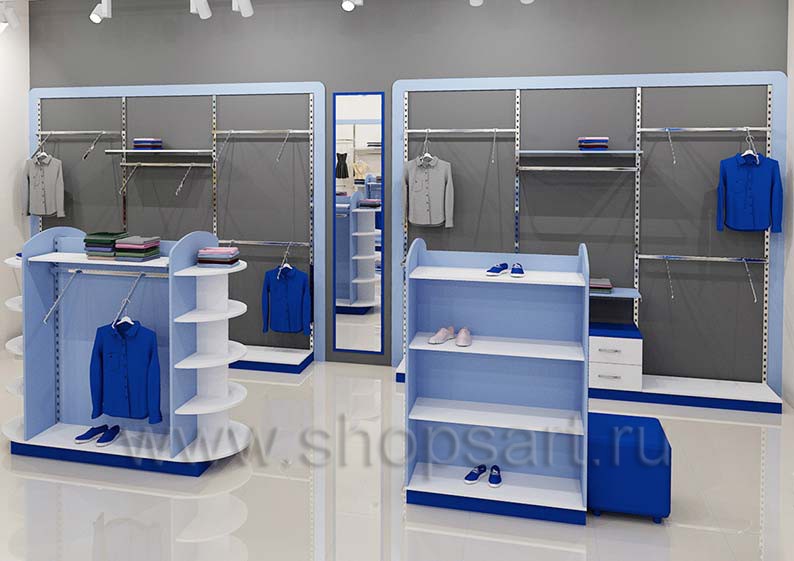 Торговое оборудование для магазинов одежды на основе коллекции ГОЛУБАЯ ЛАГУНА